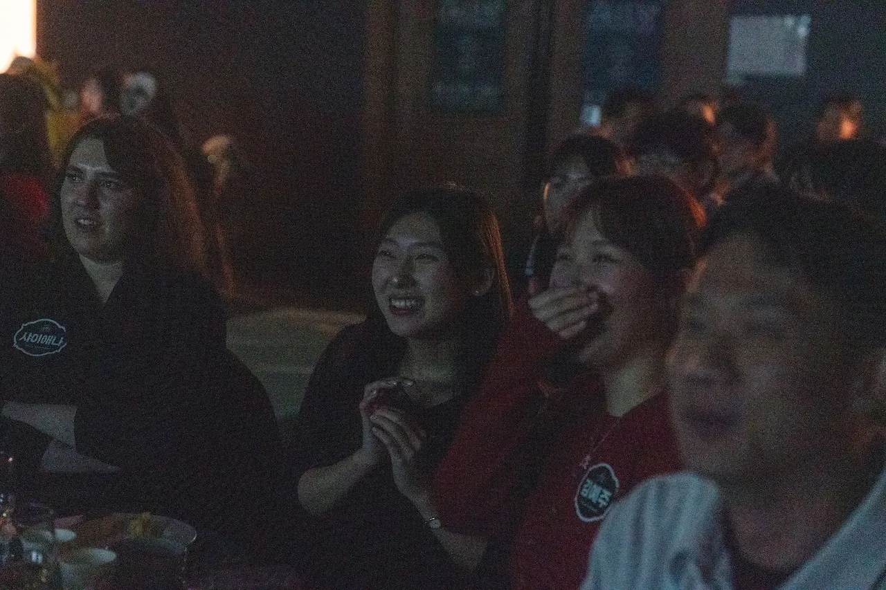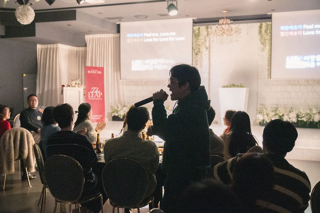 After everyone had enjoyed their meal, the lights dimmed for the next segment of the party. The leader of the official Boosters’ singer group, SCM Team, Chiho, took the stage. Chiho’s energetic performance marked the start of the event. He sang "Samijinok," encouraging everyone to sing along during certain parts of the song, and even took time for a toast with each table.