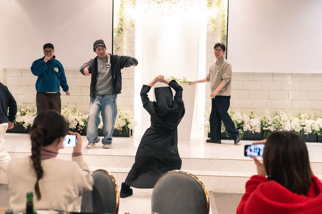 Next, the "HoHo Brothers," consisting of CFO Yongho and Chiho (who made another appearance), performed a special stage. They rewrote the lyrics to Insooni's "Chingu-yeo" and gave an outstanding performance with no signs of nervousness. It was a spectacular show!